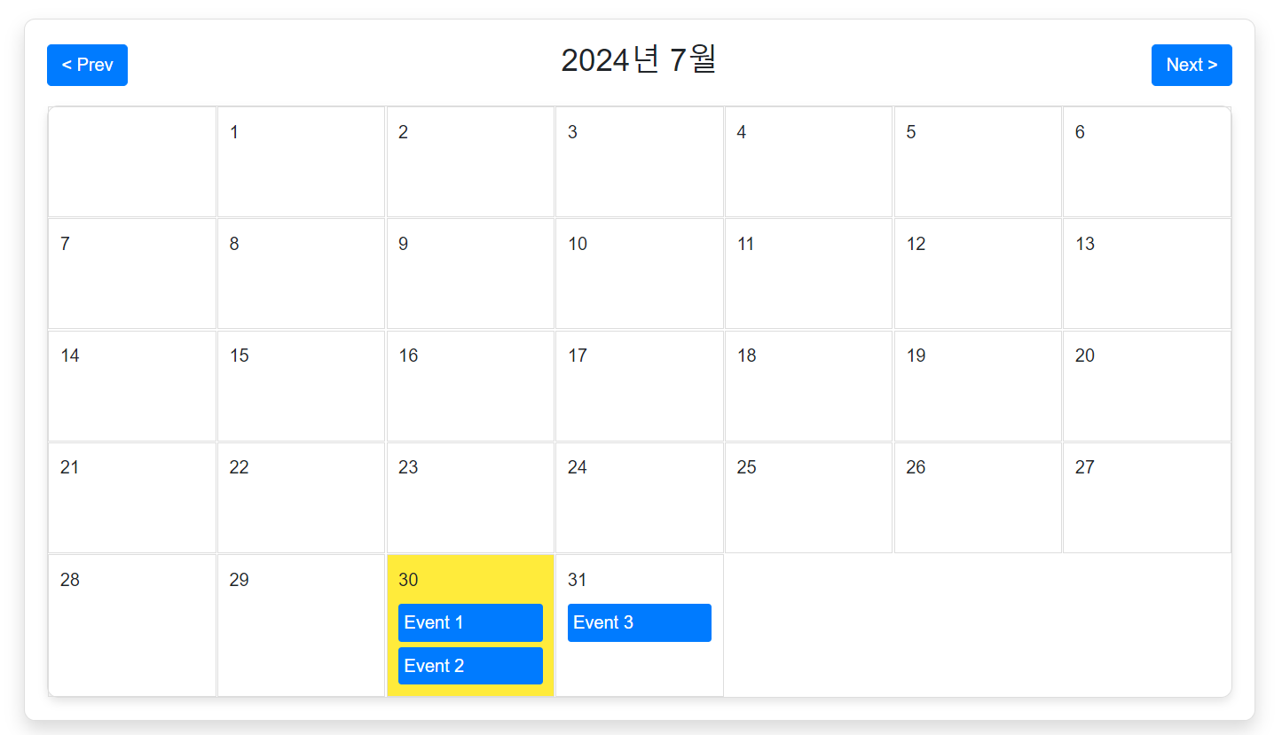 { id: 1, date: '2024-07-30', title: 'Event 1', description: 'Event 1 Description' },
